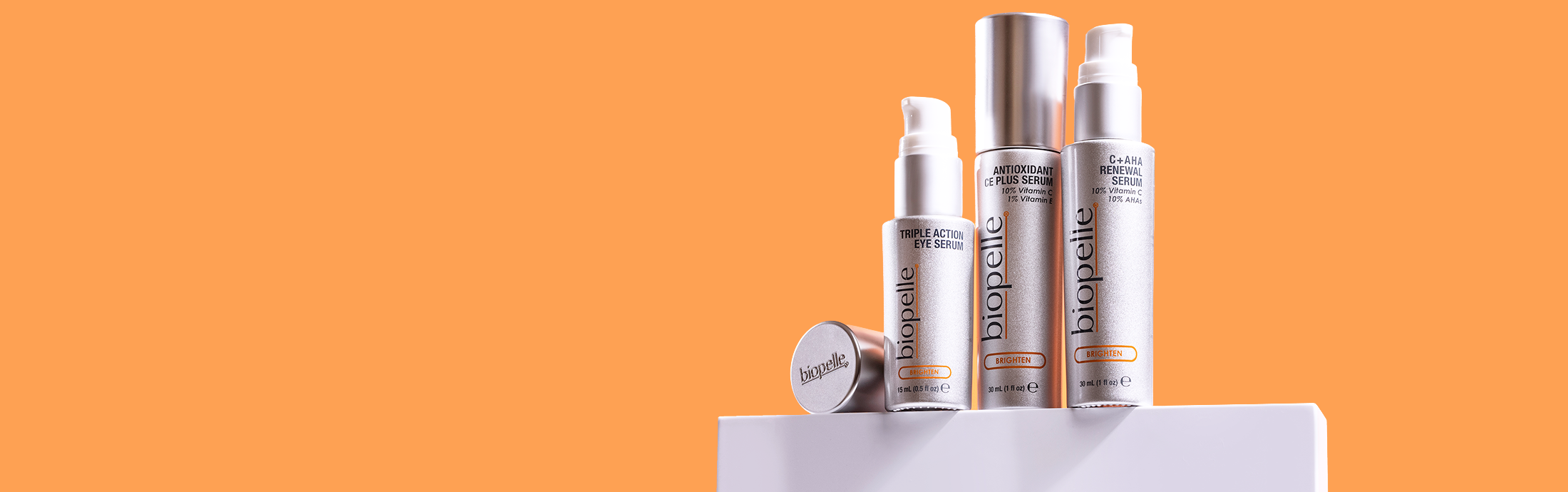 From our more stable and less irritating forms of vitamin C that help defend against free radicals to a multitude of botanicals and skin brightening agents that help minimize signs of aging, illuminate your skin with Biopelle’s Brighten Collection.
